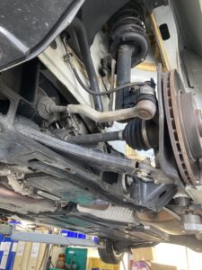 見た目の問題はなさそうなので、ロアアームやサブフレームなど、足廻り関連のボルトの締め付けを確認しました。