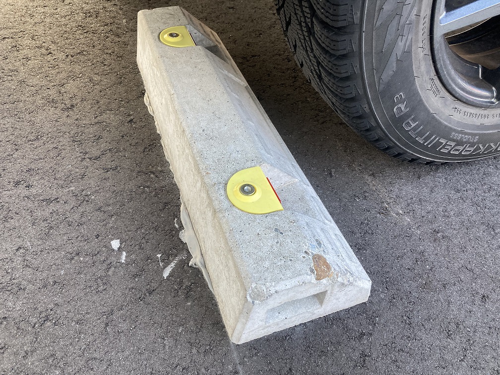 車止めに勢いよく接触したり、縁石に乗り上げた衝撃で、ホイールアライメント(車軸に対するタイヤホイールの取り付け角度や位置関係)がズレてしまうこと事もあります。