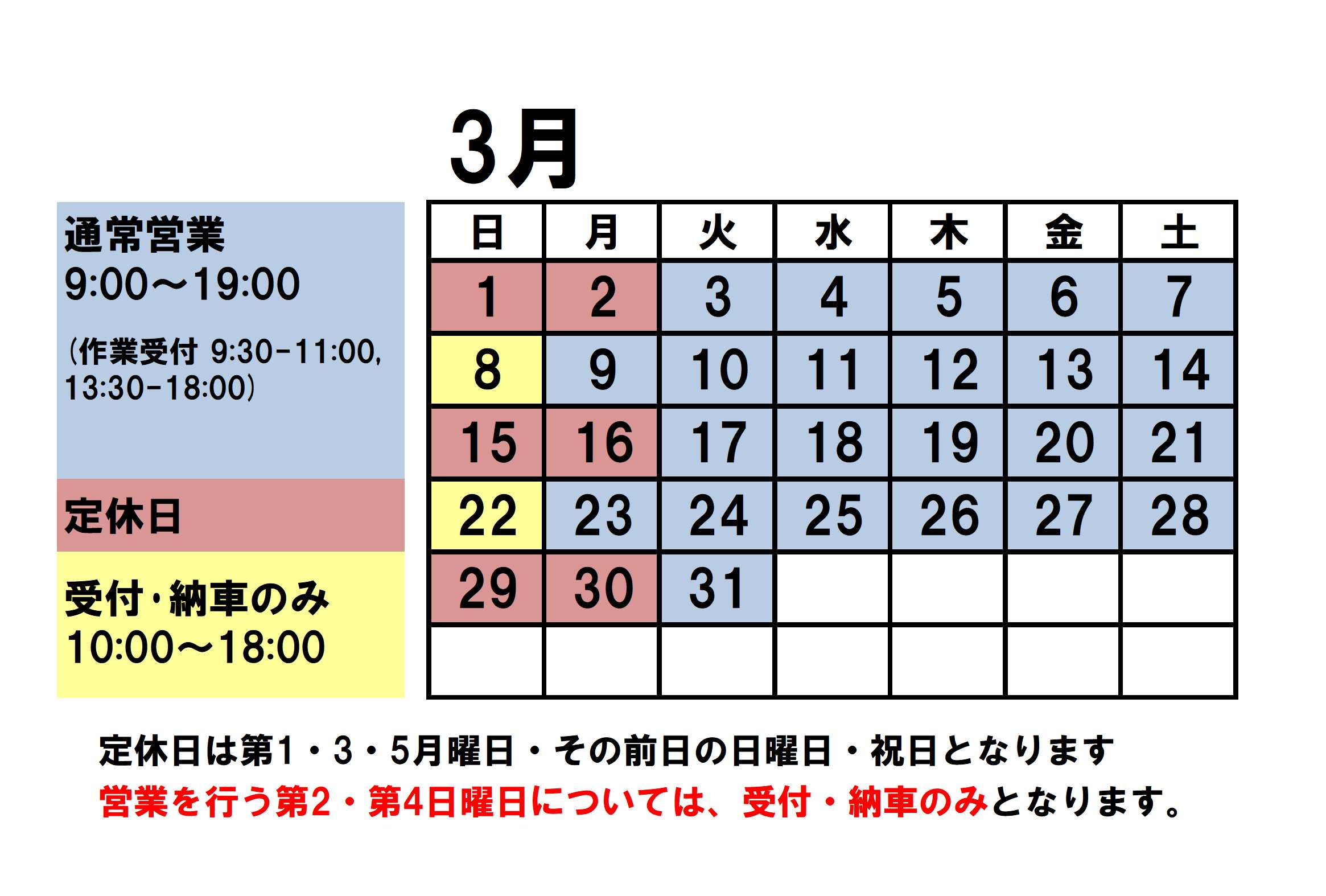 3月の営業日・定休日のご案内です。3月20日は祝日ですが営業します。